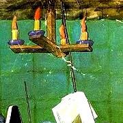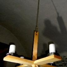 Realization of a wooden chandelier taken from King René's book dated 1460. copper cups Equipped hammered diameters of 90 mm, a pulley and a rope 6m provided.