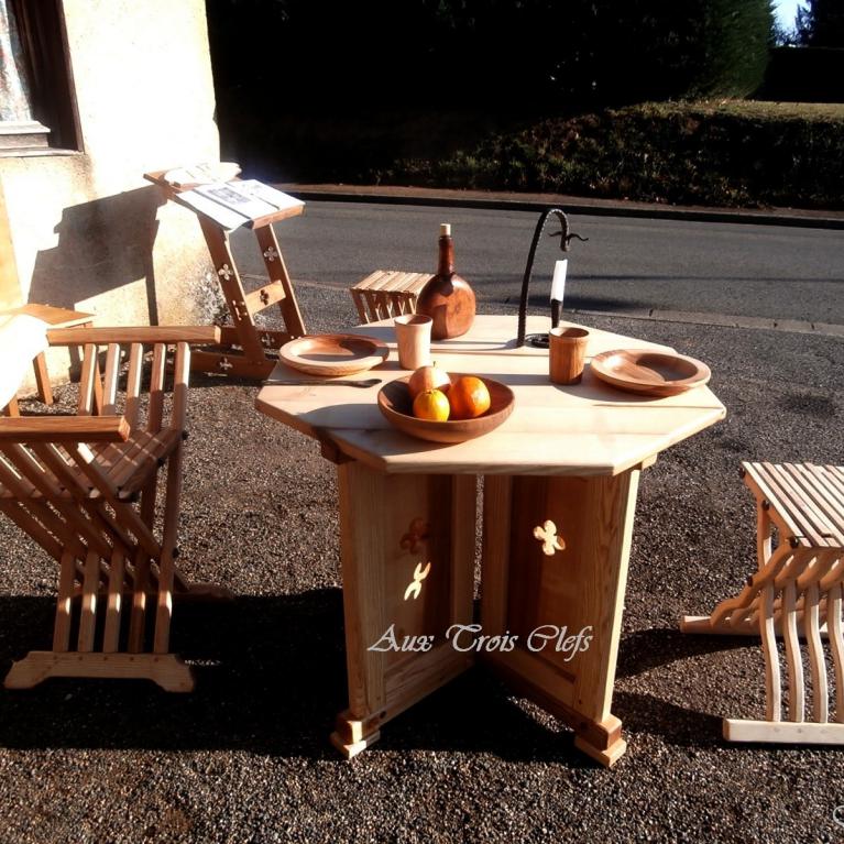 Manufacturing a hexagonal table of Gothic style the fifteenth century. Fully removable.