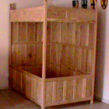 Reproduction of a removable canopy bed, head and entirely paneled side.