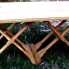 This trestle table is a reproduction that comes Château Hampton "England". It consists of two trestles which measure 73 cm high once opened and 60 cm wide and tea 0.65 m x 1.60 m long.