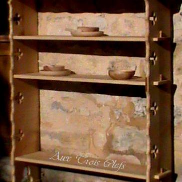 Cette étagère est entièrement démontable, assemblage par tenons et mortaises, verrouillée par des chevilles en coins.