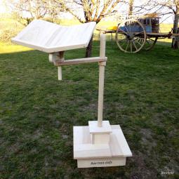 Lutrin orientable, tournant sur lui même et sur l'axe central, réglable en hauteur par une cheville. Le lutrin est démontable,