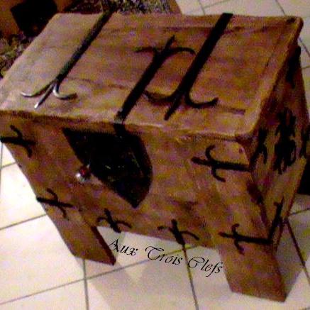 Coffre du XIII, réalisé avec une vraie serrure médiévale.