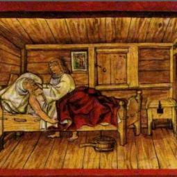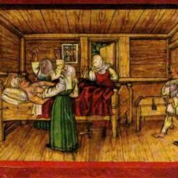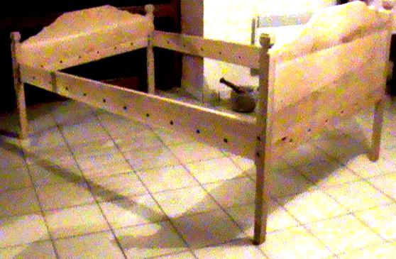 Reproduction d'un lit à corde du XVème d'après une enluminure.